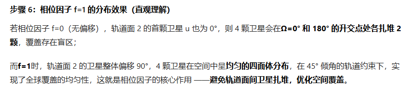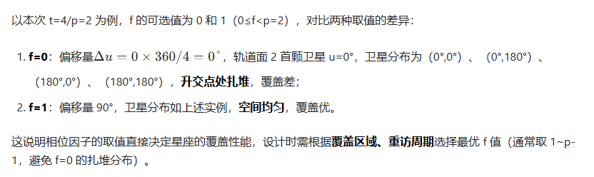 这个相位偏移 是关键!它决定了不同轨道面上的卫星是否“对齐”,从而影响覆盖连续性。