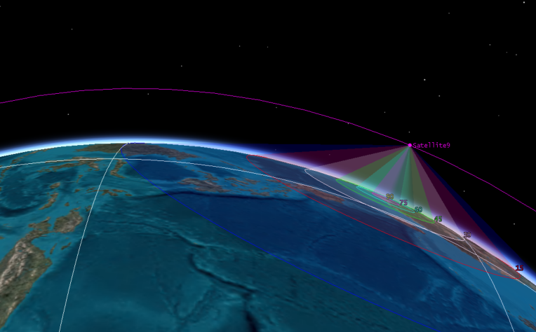 - 给 Satellite A 设红色 Contours(0°, 30°, 60°)